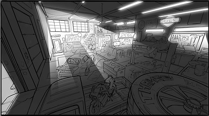 ' The Garage" was a super fun project that I'd love to take into 3D. I had a blast designing a space that I would be a "Dream Garage". I laid out a floor plan and set up the scene roughly in Maya 3D to really get familiar with the space.